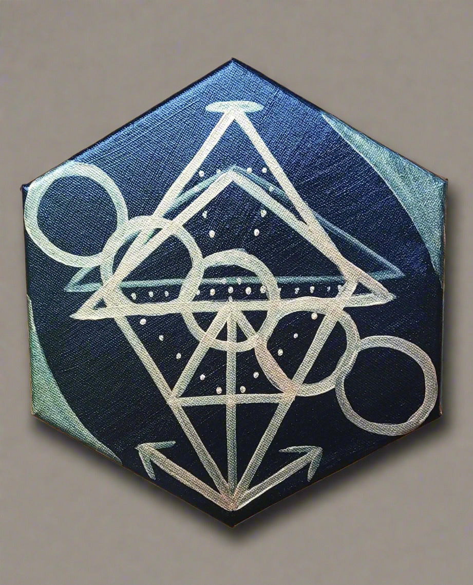 Add a touch of chic charm with this 8" Black and Gold Geometric Hexagon Canvas Painting. Featuring gleaming gold shapes that pop against a sleek black background, it's the perfect playful pop of modern art to liven up any nook or wall. Compact yet eye-catching, this piece brings a fun twist of geometry to your space!